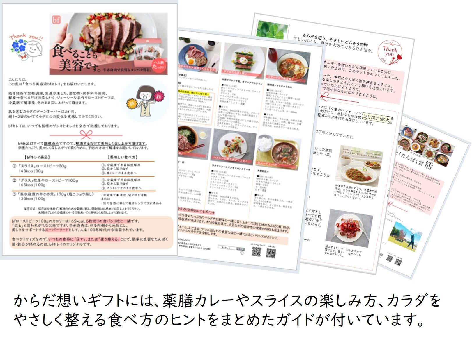 【bfガイド】からだ想いギフトには、薬膳カレーやスライスの楽しみ方、カラダをやさしく整える食べ方のヒントをまとめたガイドが付いています。