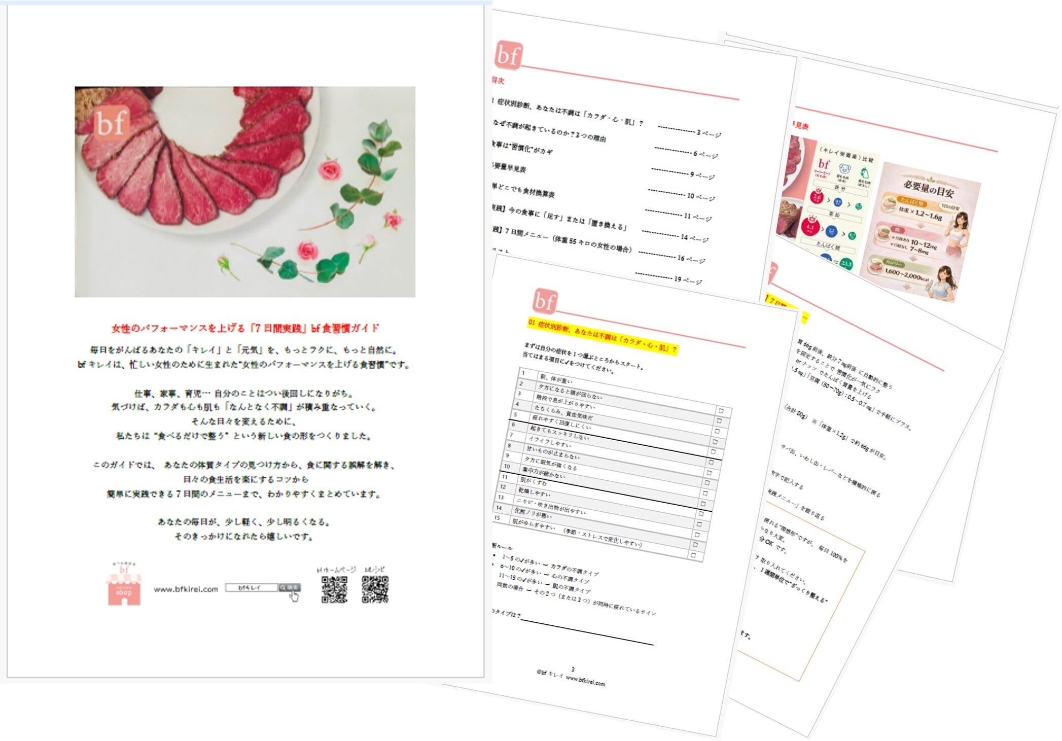 食肉業界20年以上、女性の鉄分不足の啓発に関わってきたbfキレイ店長「ビフ」が執筆・監修。女性のパフォーマンスを上げる食習慣を、「7日間の実践プログラム」としてまとめました。